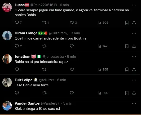 “Everton Ribeiro é esperado em Salvador, já está em busca de residência para alugar. Recebi essa informação agora. Ele já está procurando residência em Salvador para ser anunciado, em breve, como novo jogador do Esporte Clube Bahia”, disse Preto Casagrande, no Instagram.